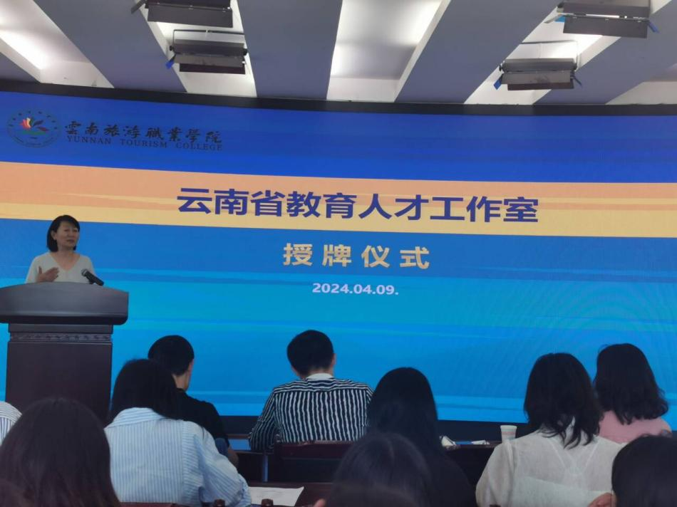 为落实立德树人根本任务,持续加强师资队伍建设,发挥教育人才工作室的专业引领、示范、辐射作用,推进高水平专业群建设,2024年4月9日下午,“云南省教育人才工作室”授牌仪式暨专题讲座在江南官方注册模拟导游厅举行。学院副院长杨红英为“云南省教育人才工作室”负责人焦云宏老师授牌,旅游管理学院党支部书记伍乐平、院长袁浩镛,教育人才工作室全体成员及部分学生代表参加了仪式,本次授牌仪式由人事处处长刘畅主持。