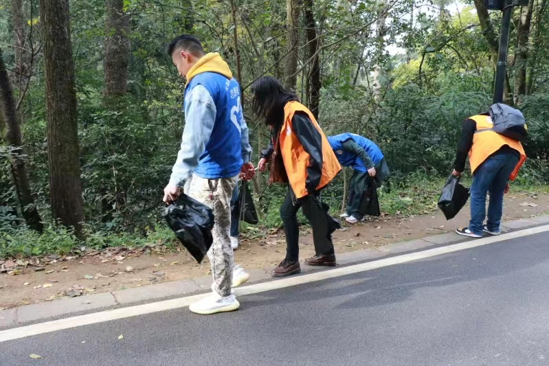 全体会员身穿志愿者马甲,拿着钳子、垃圾袋等工具, 清理登山沿途的垃圾,经过 大家近3小时热火朝天的 奋斗 , 登山大道 变得干干净净,焕然一新。