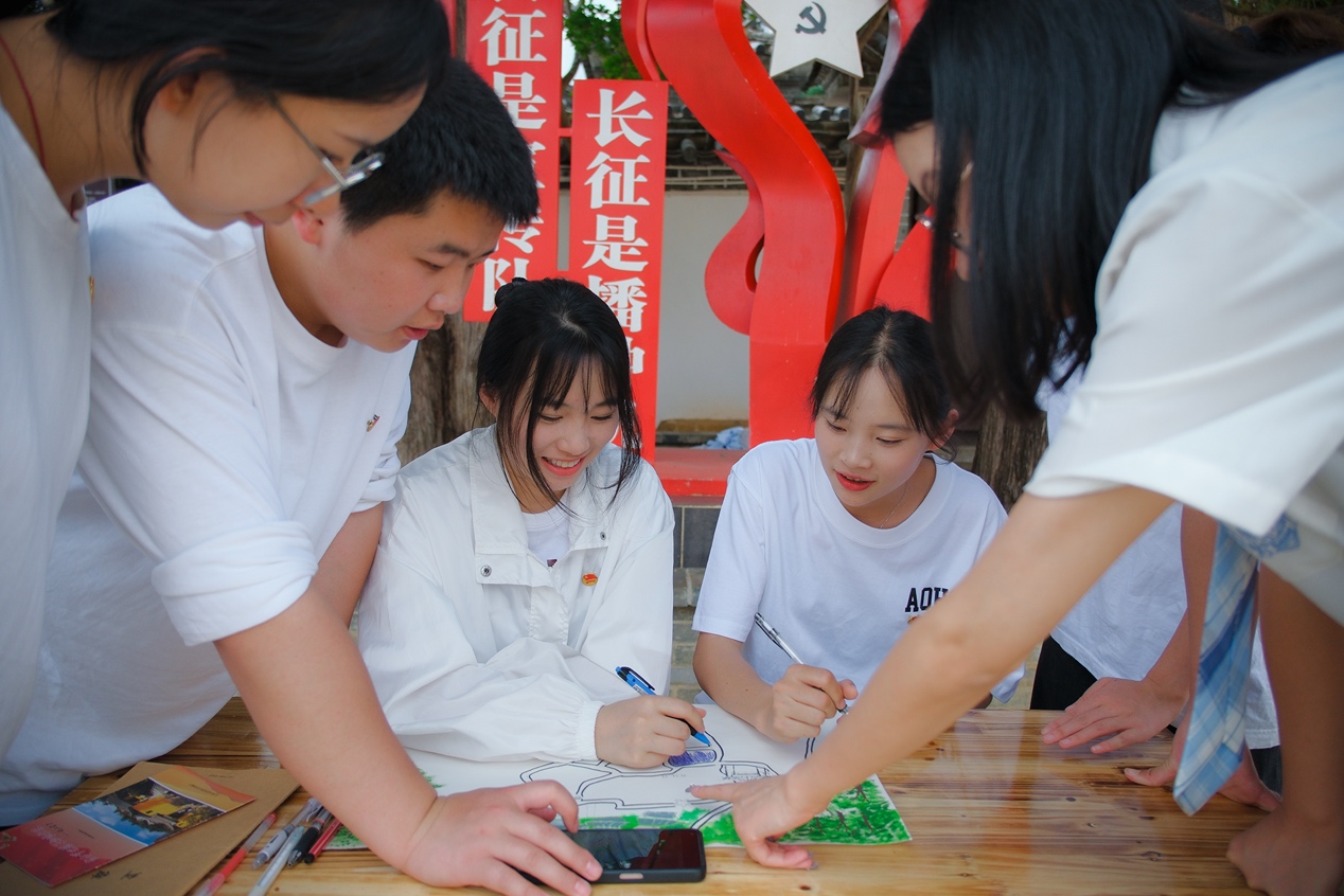 课堂上,同学们结合所学知识和现场感悟,分享了自己对红色历史的认识和对长征精神的理解。其中,旅游管理学院的学生以“手绘红色地图”的形式,展现了他们对这段红色历史的理解和学习成果。文化艺术学院的学生们则以红色舞蹈的形式,展现了他们对红色文化的热爱和敬仰,赢得了在场师生的阵阵掌声。