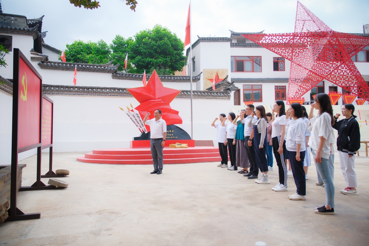 活动伊始,师生们来到柯渡红军长征纪念馆,举行了授牌仪式。随着校馆双方代表将“思政课教学实践基地”的牌匾正式交接,象征着这片充满红色记忆的土地将成为未来思政课教学的重要实践场所。紧接着,全体党员教师在党委副书记王敏同志的带领下,再次重温了庄严而神圣的入党誓词,誓言不忘初心、牢记使命。