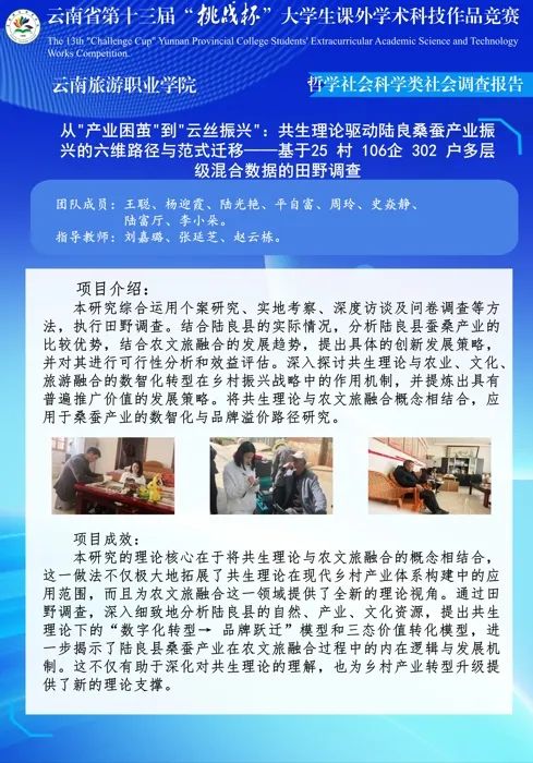 项目名称:从“产业困茧”到“云丝振兴”:共生理论驱动陆良桑蚕产业振兴的六维路径与 范式迁移——基于25村106企302户多层级混合数据的田野调查