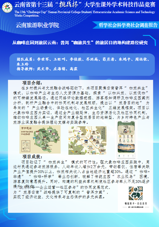 项目名称:从咖啡庄园到旅居云南:普洱“咖旅共生”的旅居目的地构建路径研究