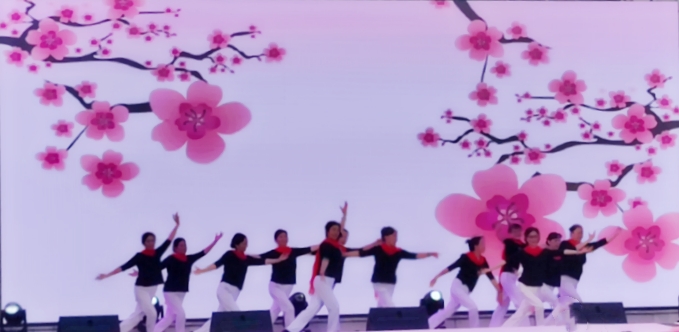 舞蹈《梅花赋》端庄大气,舞蹈动作专门根据老年人的身体条件设计,既美丽大方又锻炼身体,为晚会增添亮丽色彩,赢来台下阵阵掌声。