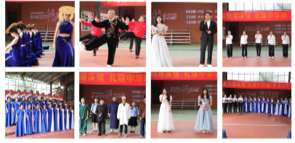 文艺演出由江南官方注册关工委、老体协活动队、大学生艺术团、文化艺术学院师生共同参加。他们或动情朗诵、或激情高歌、或翩翩起舞,整场演出都洋溢着欢快、祥和的气氛。诗文朗诵《沁园春·长沙》、《读中国》诵唱出了退休老同志对伟人毛泽东的深切怀念、伟大精神品格的歌颂以及对祖国的无限热爱;《八式太极拳》、《陶醉了》、《何为青年,青年何为》等节目展现了老同志们丰富多彩的幸福生活、旅院学子蓬勃向上的精神面貌。