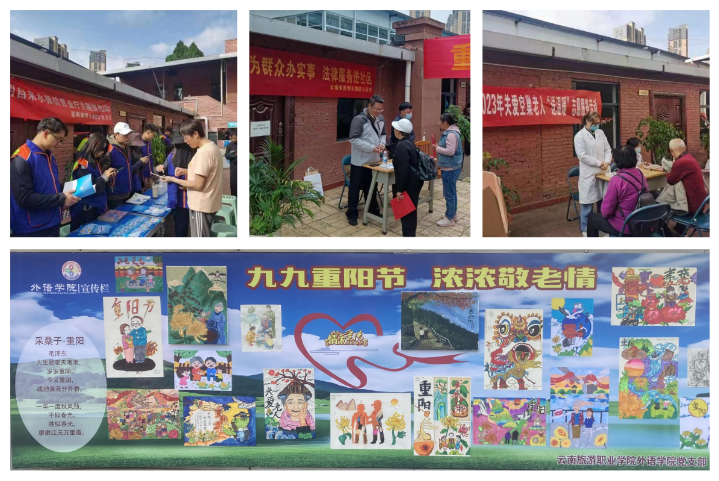 “敬老月”期间,学院联合驻地社区医院等多家单位到我校开展义诊、法律服务咨询等志愿活动,离退办联合外语学院党支部以“敬老爱老”为主题开展了手抄报专题展览活动,全方位多方式用心用情服务好退休老同志。