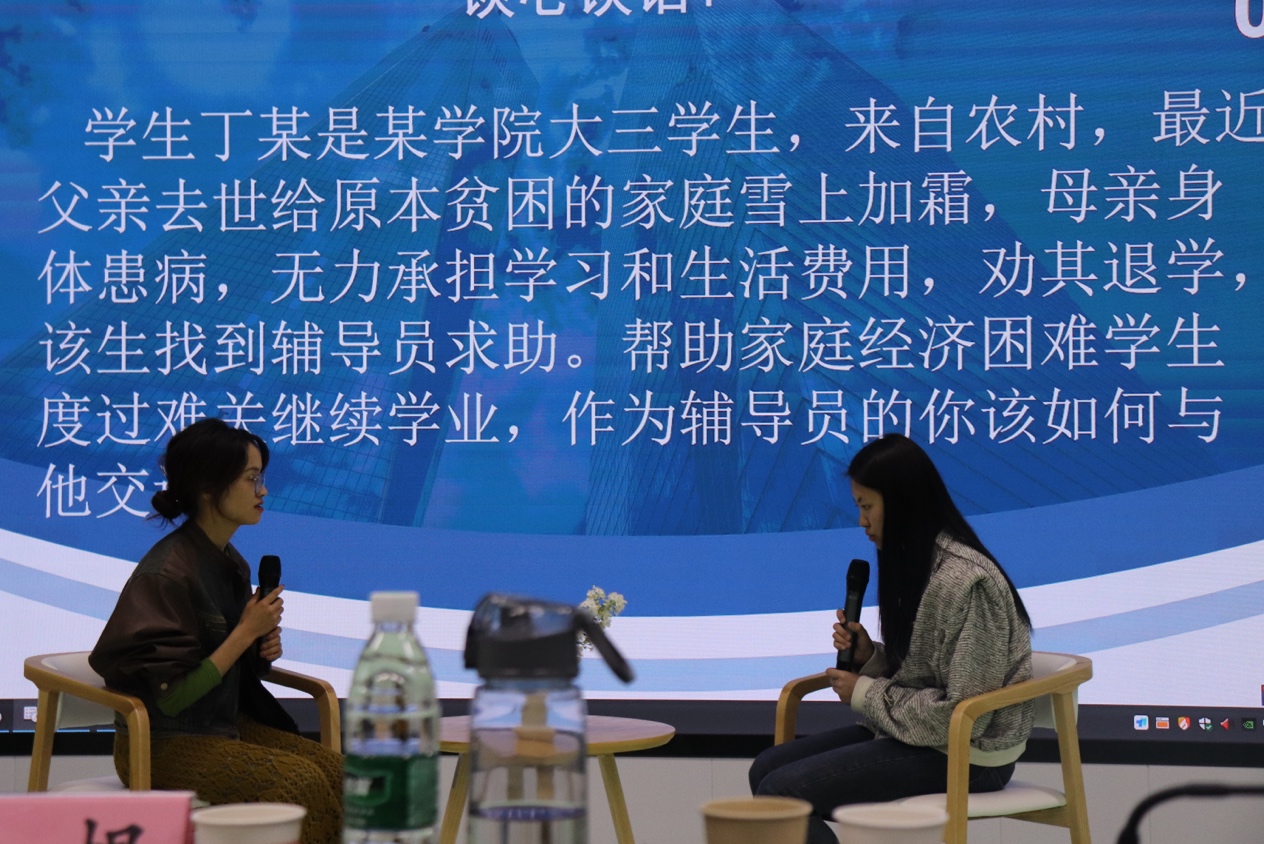 谈心谈话环节,采取情境模拟的形式,重现日常工作过程中与学生进行直接交流的场景。通过对学生思想引领、心理健康教育、就业指导以及日常管理等多个方面的综合考察,评估辅导员在掌握学生个性特点、成长成才规律及突发事件应对能力等方面的综合素质。