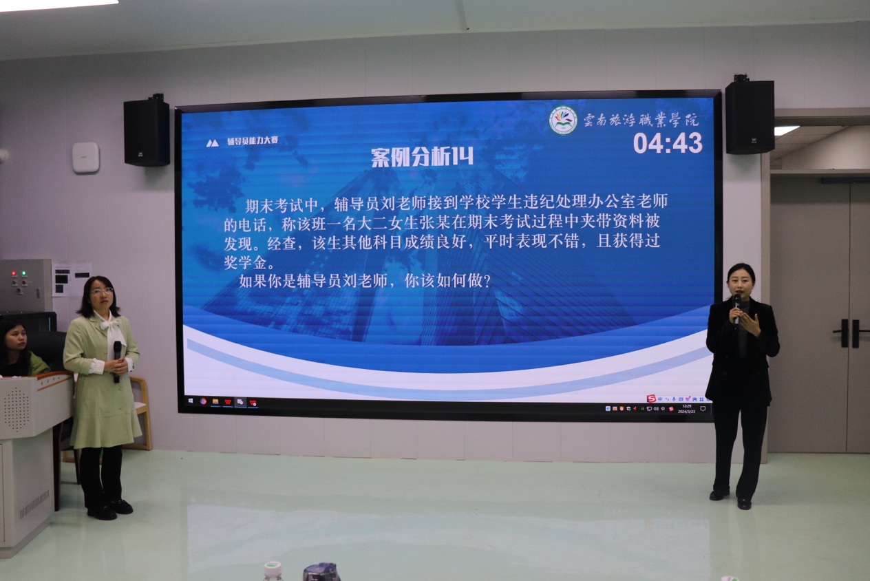 本次大赛邀请了云南省首届辅导员名师工作室主持人,云南省首届最美高校辅导员,云南省第十一届高校辅导员年度人物,云南省最受学生敬佩辅导员云南民族大学张根副教授,学院党委副书记王敏,宣传部长田靖担任评委指导比赛。各二级学院党支部书记到场观摩。