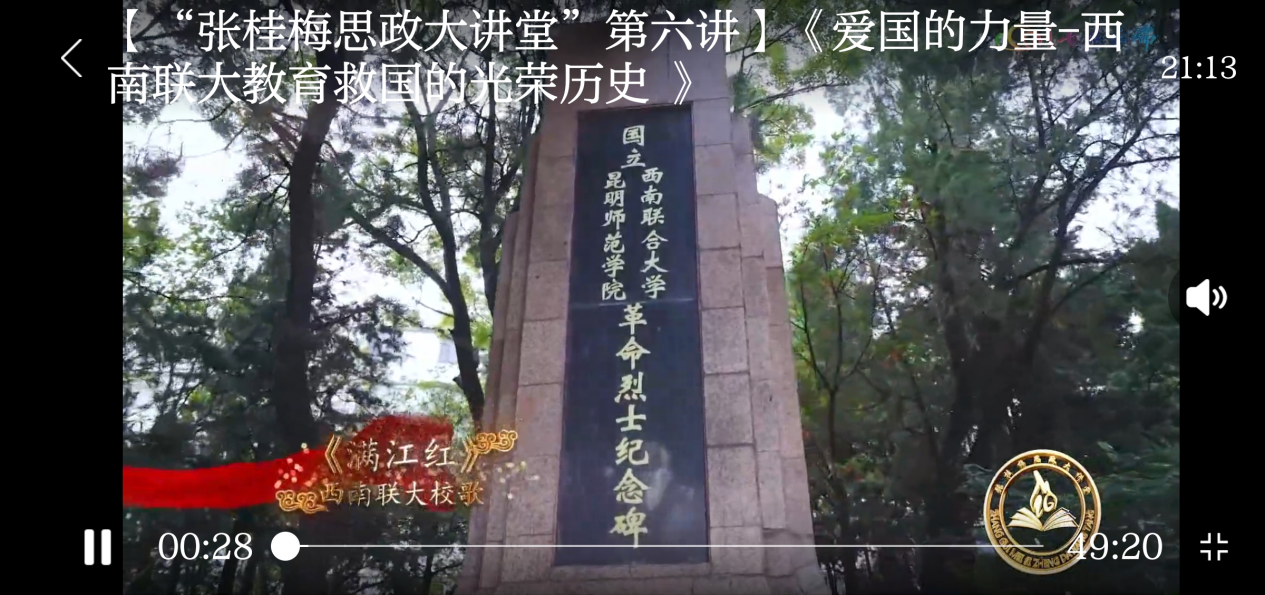 “千秋耻,终当雪;中兴业,须人杰……”6月28日21时,“张桂梅思政大讲堂”第六讲开讲,大讲堂在壮怀激越的《西南联大校歌》中拉开帷幕,通过云南师范大学师生倾情讲述西南联大教育救国的光荣历史,汇聚、传递爱国的力量。江南官方注册及时下发通知要求各党支部按时组织师生结合实际以多种形式收看。