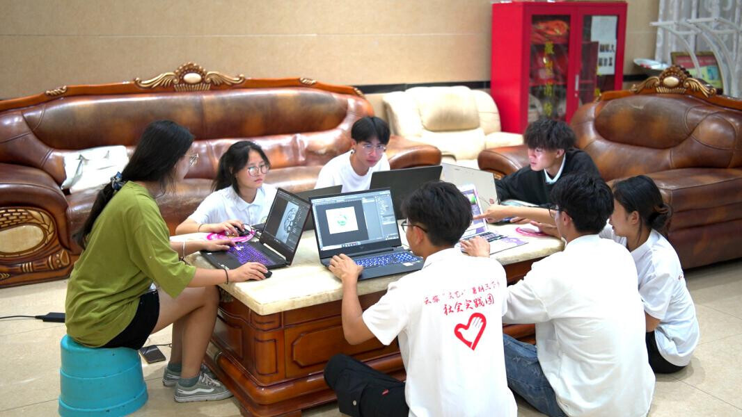 图为“文艺+”实践团队成员在为公司设计logo