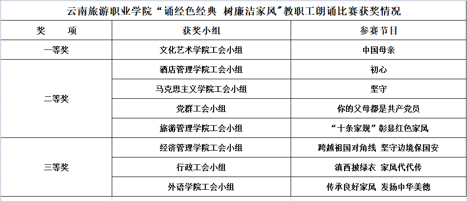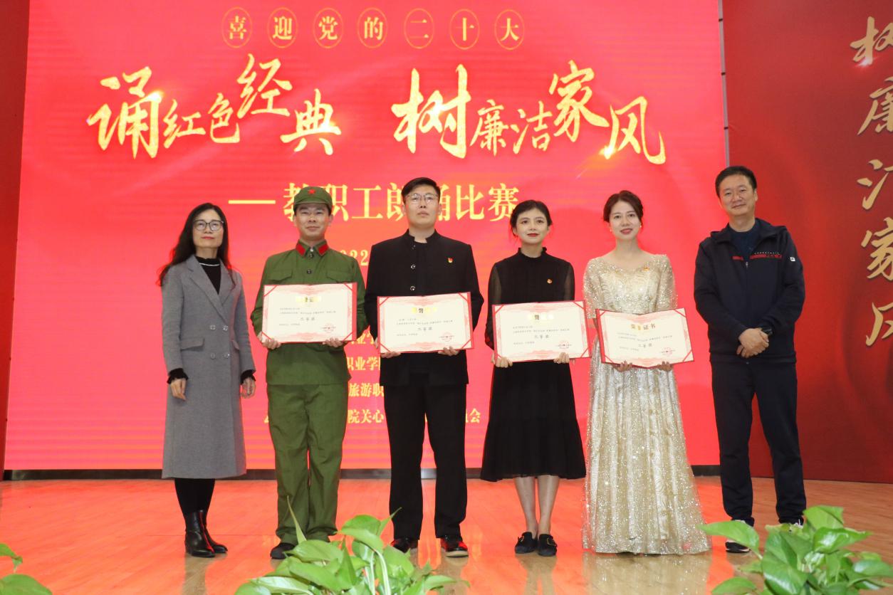 为深入学习贯彻习近平总书记关于党风廉政建设和家庭家教家风建设的重要论述精神,教育引导广大教职员工从红色经典中继承和庚续革命前辈的好家风、好作风,传承中华民族传统美德,以良好家风助推“五清旅院”建设。10月12日下午,学校党委宣传部、工会、共青团、关工委联合举办“诵红色经典 树廉洁家风”教职工朗诵比赛,13个工会小组,60余位参赛教职员工,以主题朗诵共同喜迎党的二十大胜利召开,创新推动趣味盎然、气氛浓烈、师生共同参与的教职工政治理论学习形式。