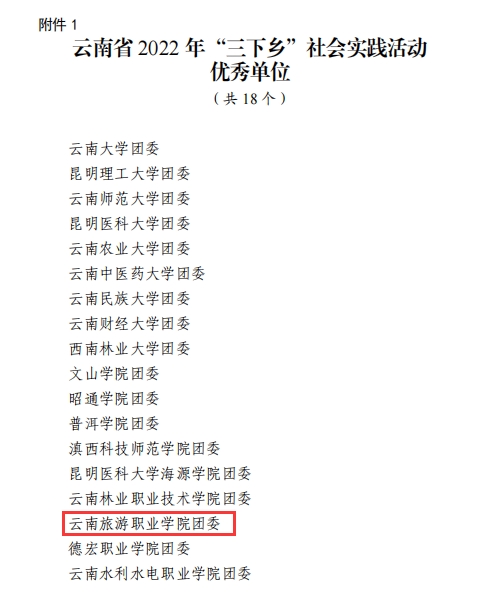 为深入学习贯彻习近平总书记在庆祝中国共产主义青年团成立100周年大会上的重要讲话精神,坚持立德树人根本任务,落实“三全育人”要求,教育引导广大青年学生坚定信念听党话、跟党走,以实际行动迎接党的二十大胜利召开。我校团委积极贯彻落实团中央、共青团云南省委和学校党委工作部署,传承学校“知行并尚、化育延芳”育人特色,将暑期社会实践活动作为团委全年重点工作之一,围绕“双高”专业群建设,结合学校特色和专业特点,重点组建理论普及宣讲团、党史学习教育团、乡村振兴促进团、发展成就观察团、民族团结实践团、国家通用语言文字普及实践团等9支重点实践团队,采用线下实践、云端辅助、课程设计、成果转化等方式,全方位展示我校学子助力乡村振兴的良好风范,受到实践地政府的一致好评。