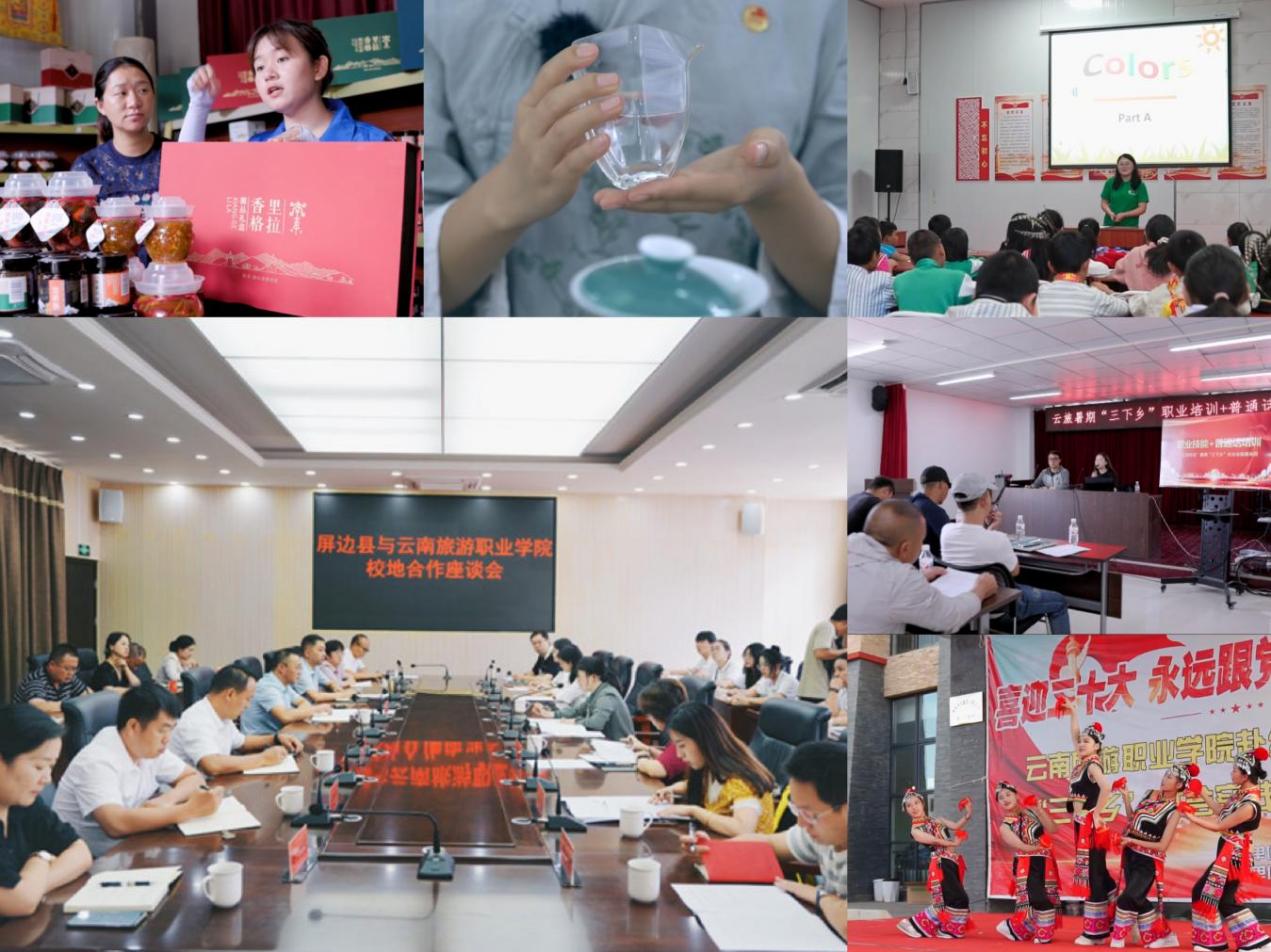 探索构建“专业实践+专业契合”融合模式。以实施“技能云南”行动为牵引,在国家级重点帮扶县,对口支援、培训乡村旅游实用技能人才,将乡村振兴战略与“三下乡”社会实践活动育人功能内外融合,充分发挥“大思政课”育人作用。
