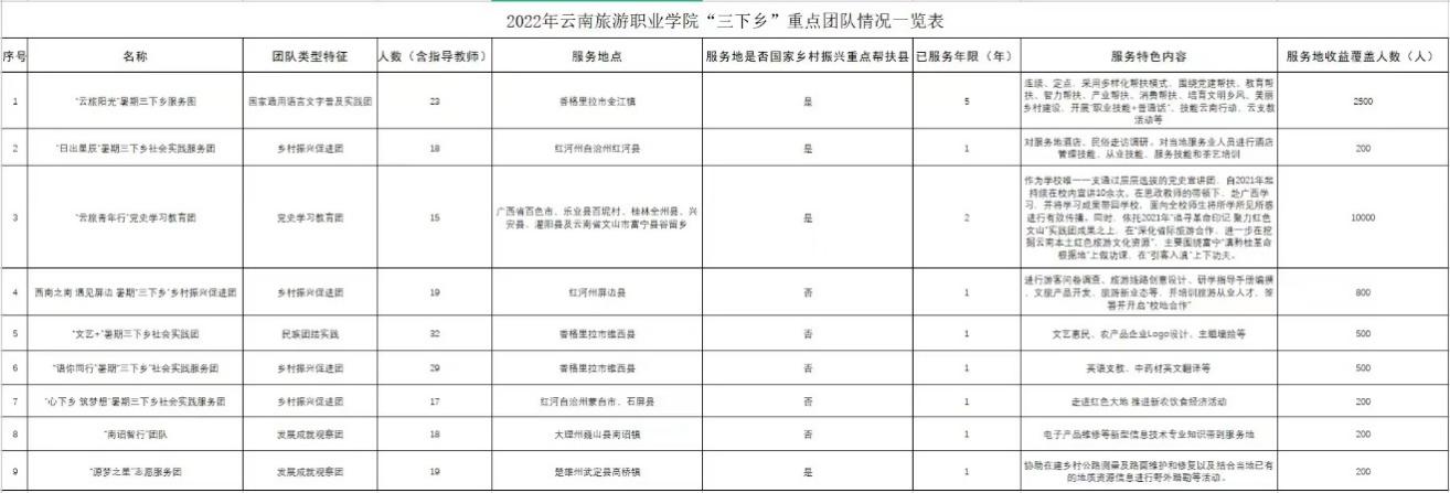 表:2022年江南官方注册“三下乡”重点团队情况一览表