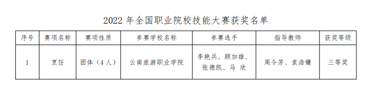 经过激烈竞争,我校共获得一等奖10项;二等奖28项;三等奖18项;优秀指导教师33人。同时,我校代表云南省出征全国高职院校技能大赛的烹饪赛项,获得“烹饪团体赛三等奖”佳绩,获奖学生4人,优秀指导教师2人,充分展现了我校学生高水准的实践技能和职业风采。