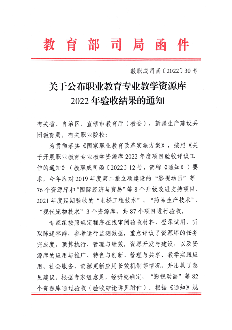 根据《关于公布职业教育教学资源库2022年验收结果的通知》(教职成司函〔2022〕30号),我院联合主持的国家级专业教学资源库建设项目《智慧景区开发与管理专业教学资源库》(以下简称“智慧景区资源库”)通过教育部验收。