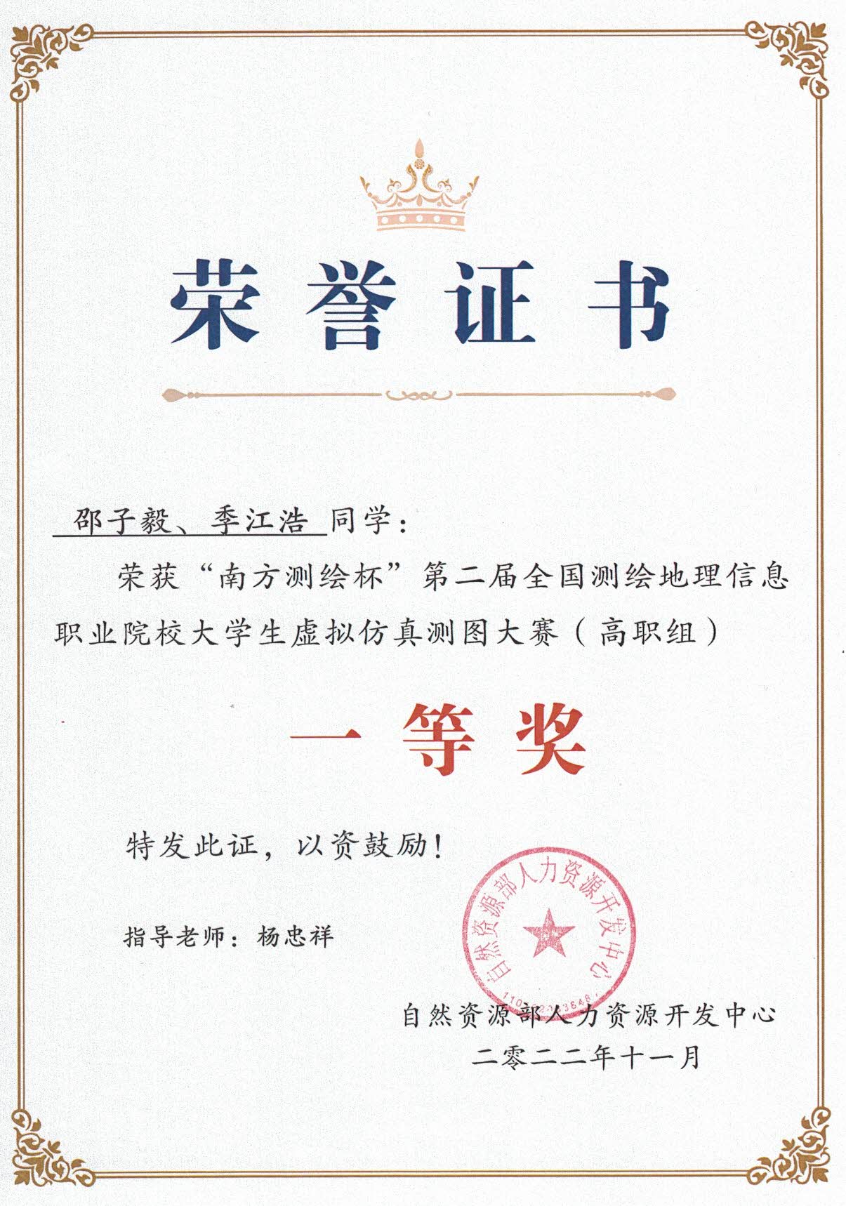近日,自然资源部人力资源开发中心《关于公布“南方测绘杯”第二届全国测绘地理信息职业院校大学生虚拟仿真测图大赛获奖结果的通知》公布,我院资源工程学院派出参赛的两支队伍4名同学,经过激烈角逐,分别获得一等奖和二等奖,学院荣获团体二等奖的好成绩。