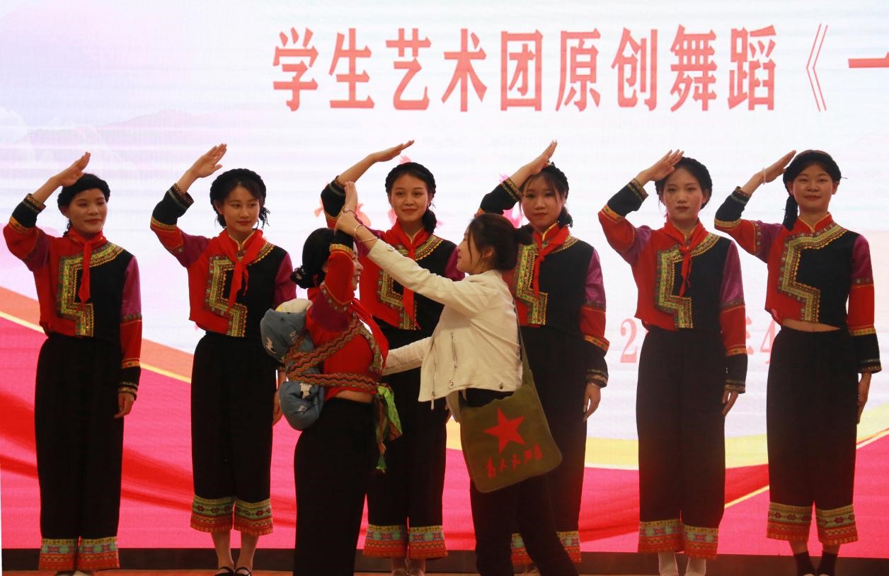 学院大学生艺术团原创舞蹈表演《一个也不能少》,同学们深情地演绎出一个教育者:不抛弃、不放弃任何一个学生,饱含深情的诠释着“一个都不能少”。新时代的教育工作者在面对世界百年未有之大变局,要坚持“为党育人、为国育才”的初心使命,耕耘当下,绵延未来,要赓续教育初心,传承地校精神。