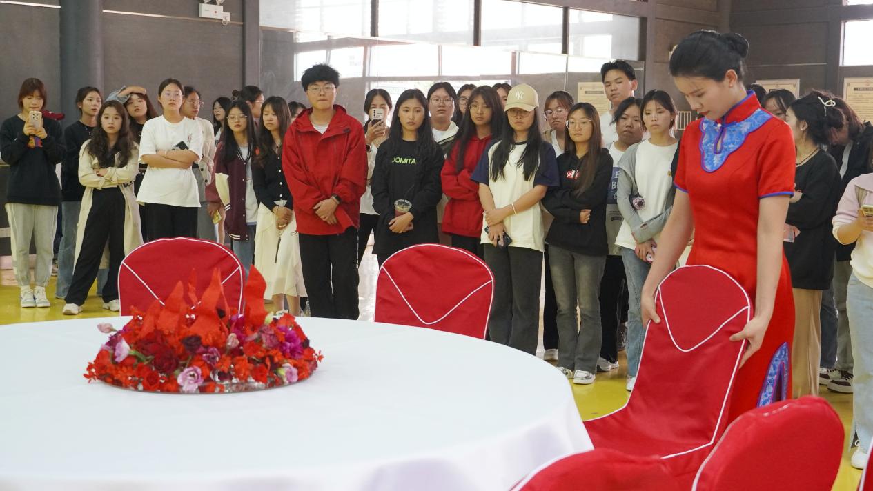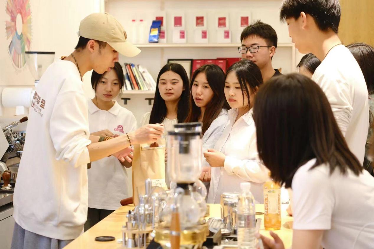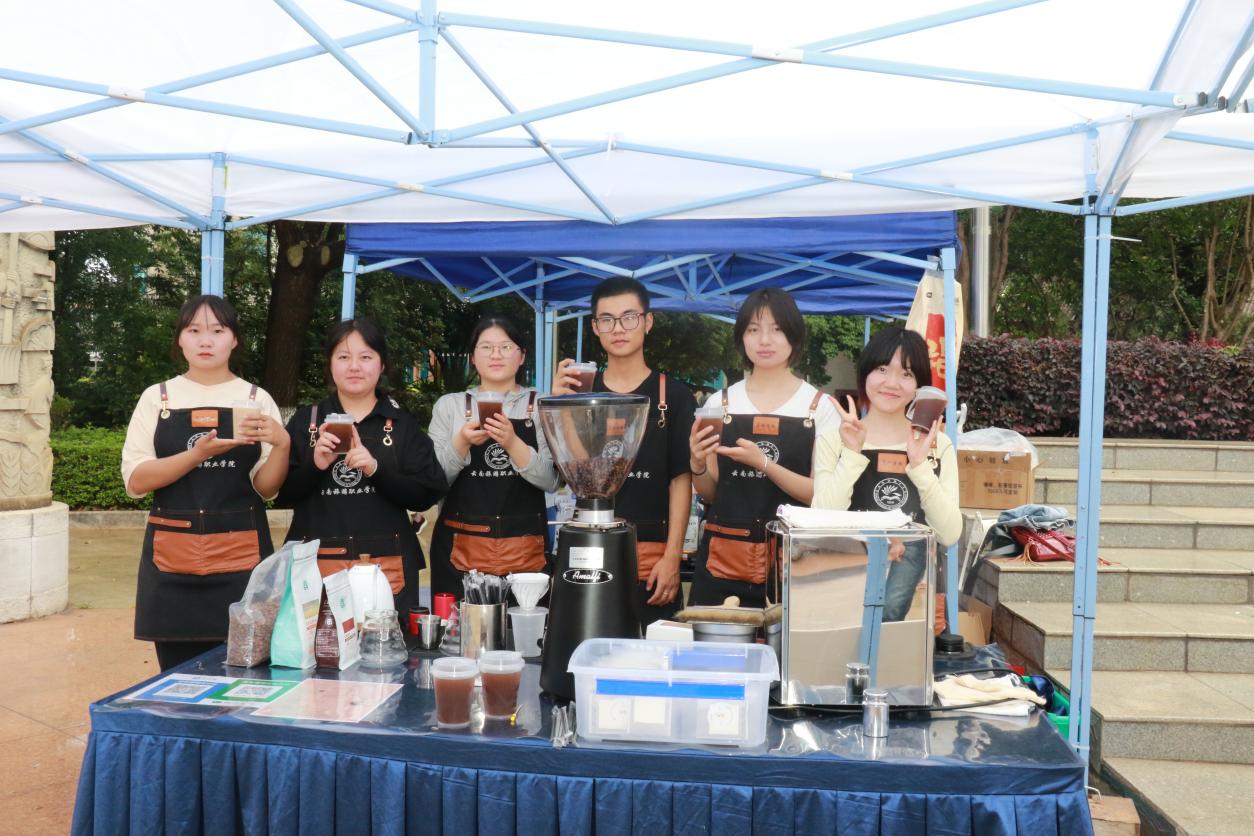 在酒店服务技能展示活动中,刚参加完第二届全国乡村振兴职业技能大赛返昆的酒店管理学院2名师生,又积极参与到活动周中。在餐桌前,酒店管理与数字化运营专业2022级同学矣金莉和张艳老师有条不紊的展示着宴会摆台,她们全程以国赛标准进行展示,给同学们带来了一场优雅的视觉体验。与此同时,由酒店管理学院主办、卡夫卡咖啡光宗3号咖啡和摸鱼咖啡承办的“啡尝不可”咖啡体验活动在酒店管理学院实训楼顺利举办,同学们从咖啡冲泡,品鉴等学习到了不一样的咖啡文化,大家一边聆听一边亲手操作,感受着咖啡制作过程中的美好,同时也让职业教育与日常学习有了更加紧密的联系。