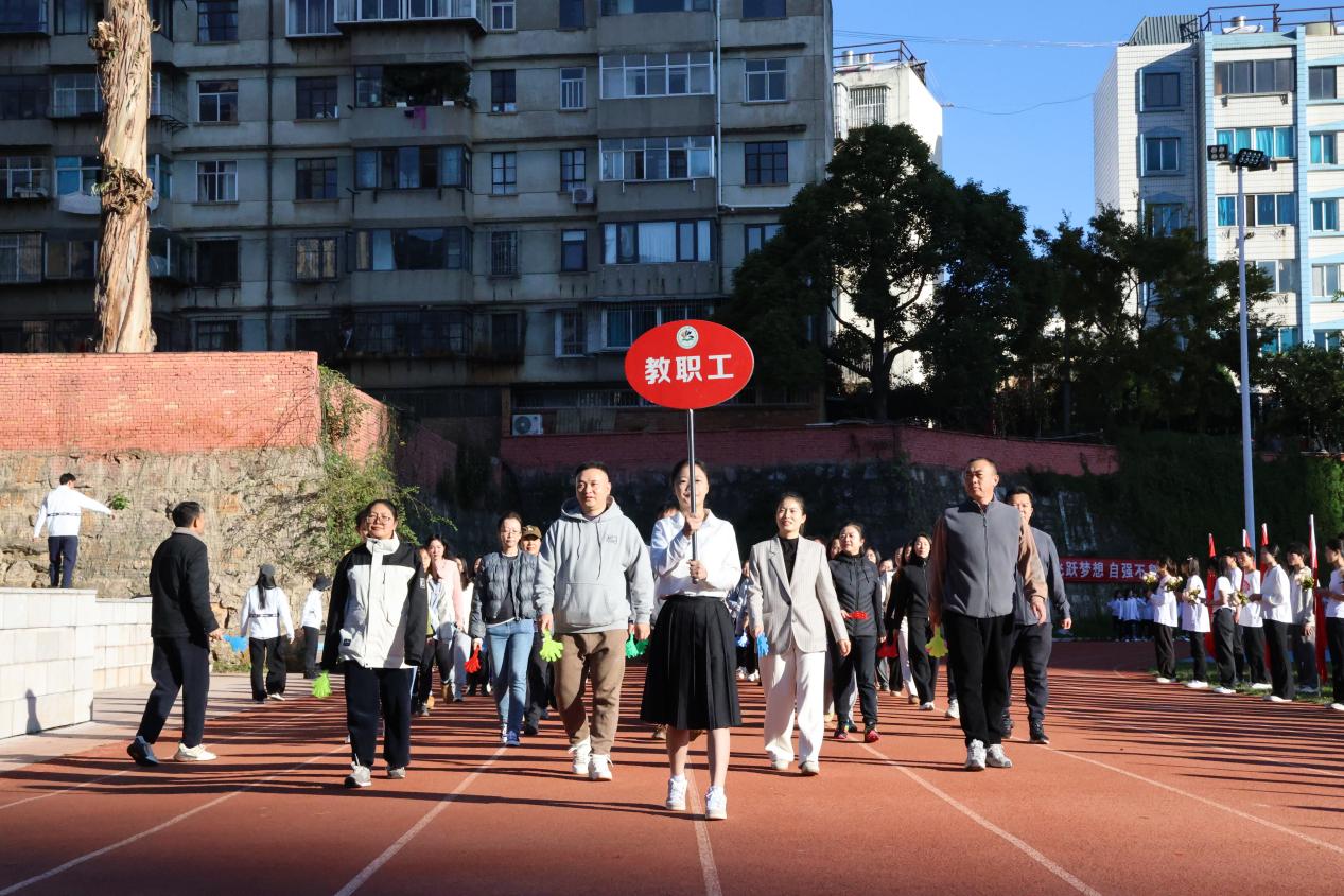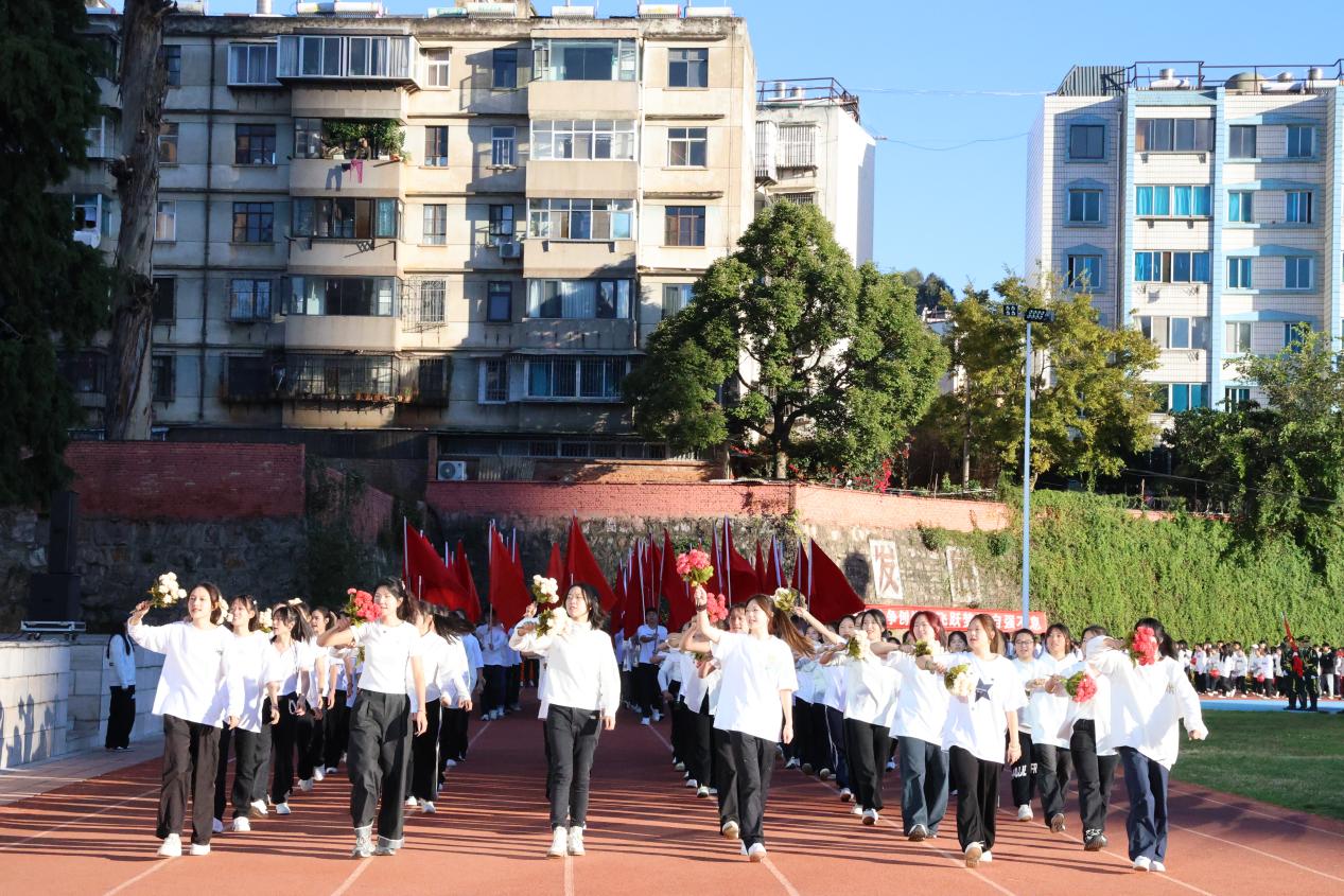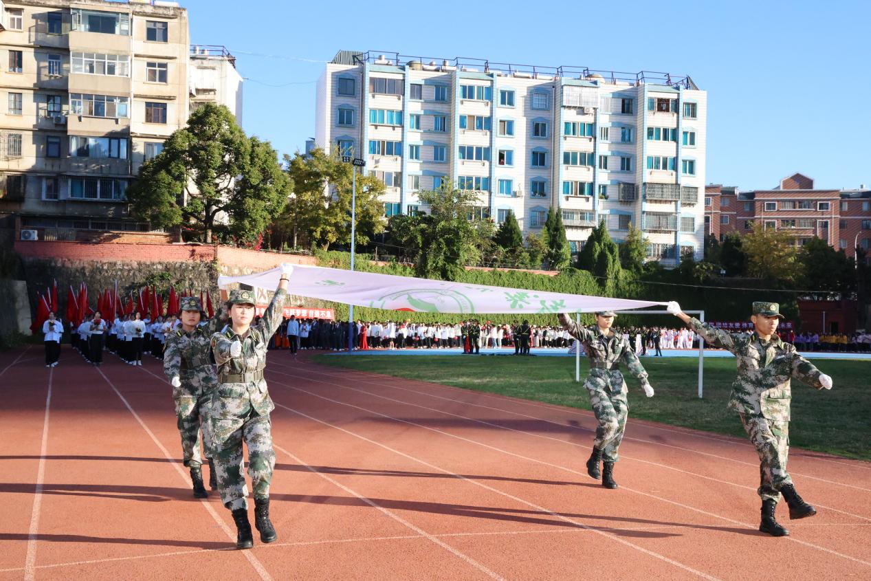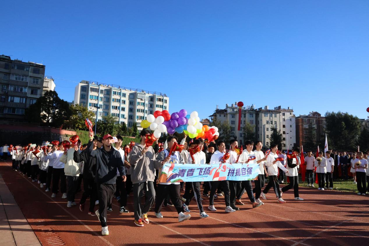 啦啦操热情灵动的表演后,护旗手方队、校旗、红旗、鲜花方队,各二级学院运动员方队依次入场。每个方队的师生都身着统一队服,喊出专属口号,彰显拼搏向上的运动精神,展露百花齐放的青春色彩。
