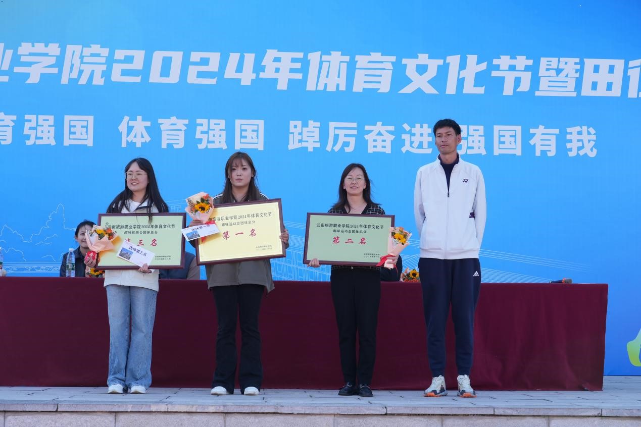 教职工比赛中,教务工会小组力拔头筹,将双金收入囊中,分别获得气排球比赛及田径比赛团体总分的第一名。学生比赛中,烹饪学院和文化艺术学院分别以71分和219分斩获趣味比赛团体总分及田径比赛团体总分第一名,在团队合作中收获荣誉,分享喜悦,感受热血,致敬青春。