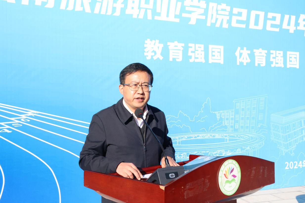 他指出,党的十八大以来,党中央高度关心和重视体育事业,多次强调加快建设体育强国。学院一年一度的田径运动会正是展现青年学生精神风貌、弘扬体育之美、贯彻习近平总书记关于体育强国战略思想的具体实践。多年来,学院紧紧围绕立德树人根本任务,坚持以习近平总书记关于教育的重要论述为指导,着眼于培养德智体美劳全面发展的社会主义建设者和接班人,扎实推进教育高质量发展,实施“体育浸润行动计划”,以体教融合为抓手,建立高素质体育专项教师队伍,打造校园体育精品赛事,让学生在体育强国建设中获得健康、汲取力量。