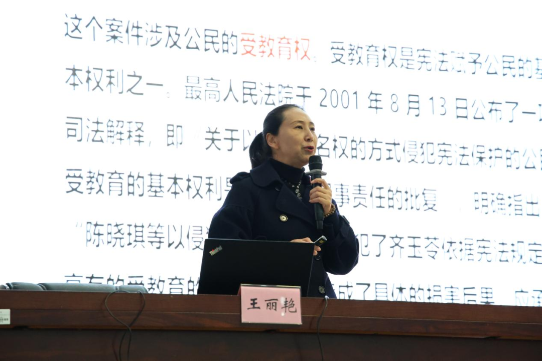 为深入推进法治校园建设,引导广大学生做到“学法、知法、守法、用法”,4日下午,继续教育学院联合教场北路社区邀请法律专家王丽艳律师开展《宪法知识讲座》及《大学生就业与劳动保障法律知识培训》。