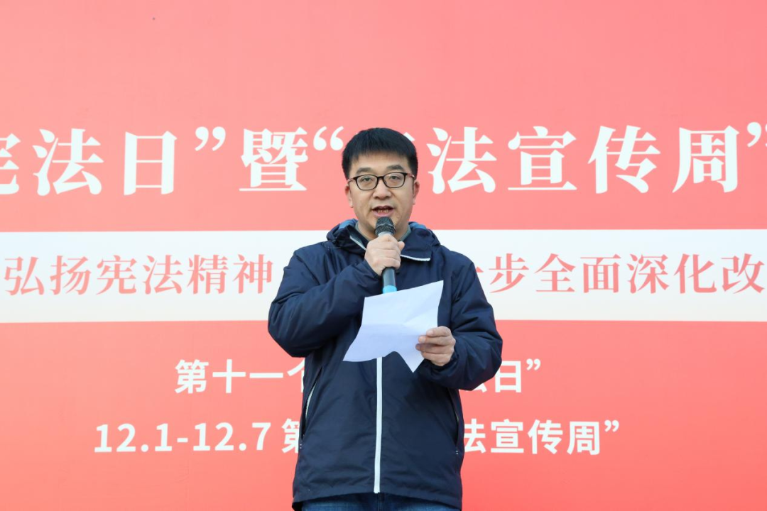何树称副院长在现场讲话时指出,宪法规定了国家的基本制度、公民的基本权利,是全体人民意志的集中体现,它引领着我们不忘初心、牢记使命,坚定不移地走中国特色社会主义法治道路。他强调,作为新时代的青年学子,大家肩负着建设社会主义法治国家的重任,希望全体师生积极参与到“宪法宣传周”及“校园法治宣传教育月”的各项活动中来,共同营造尊崇宪法、学习宪法、遵守宪法、维护宪法的良好氛围,共同为建设社会主义法治国家而努力奋斗。
