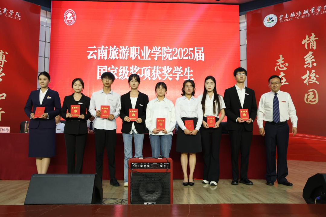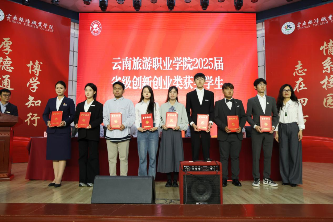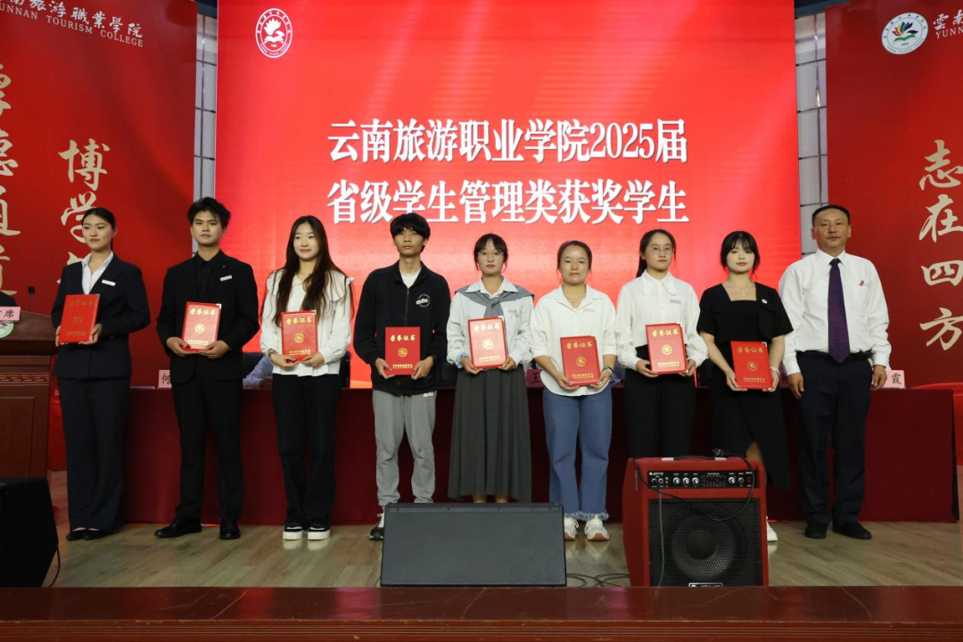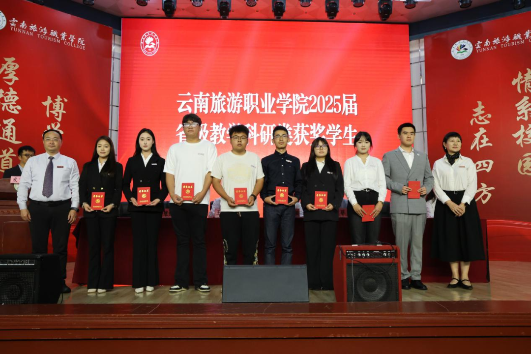 典礼中,党委书记王翔等校领导分批次为获奖学生颁奖。创新创业类省级以上获奖代表、教学科研类省级以上获奖代表、学生管理类省级以上获奖代表、国家级以上获奖代表以及《云南省大学生体质健康优良证书》“优秀”“良好”毕业生代表依次上台领奖。每一份荣誉的背后,都是学子们三年来的辛勤付出与不懈奋斗。