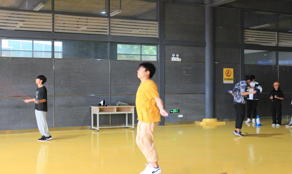 第一项比赛是“跳绳比赛”,只听裁判员一声令下,就看到参赛选手手里的跳绳快速摇动,犹如条条彩龙在飞舞,耳边只听到绳子甩动的声音。