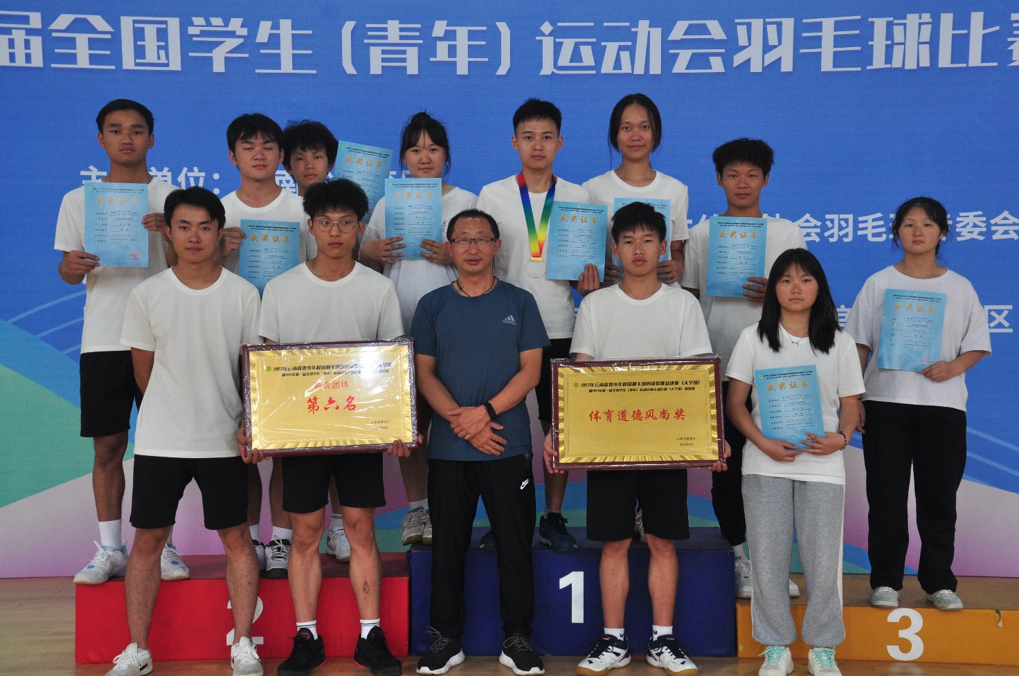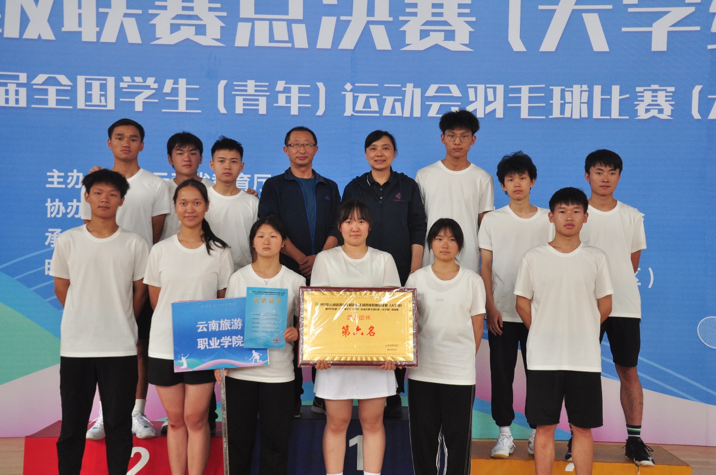 6月16日,云南省青少年校园羽毛球四级联赛总决赛(大学组)暨第一届全国学生(青年)运动会羽毛球比赛(大学组)选拔赛落下帷幕。我校羽毛球队在黄绍勇副院长,邹健老师的带领下取得高职高专组男子单打第一、混合团体第六名的好成绩,并收获了体育道德风尚奖称号。其中导游2001班罗烈君获得优秀运动员称号、邹健老师获得优秀教练员称号。