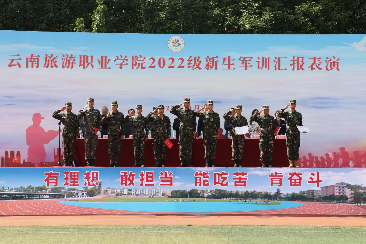 磨砺青春 沙场点兵随着十月的余晖迎着十一月的朝阳一年一度的军训已经圆满结束千名旅院学子身着戎装在气势宏大的乐声中挥洒着他们的青春汗水与昂扬激情11月6日上午10点,2022级新生军训汇演暨总结表彰大会在高新教学实训基地田径运动场举行。学校领导,办...